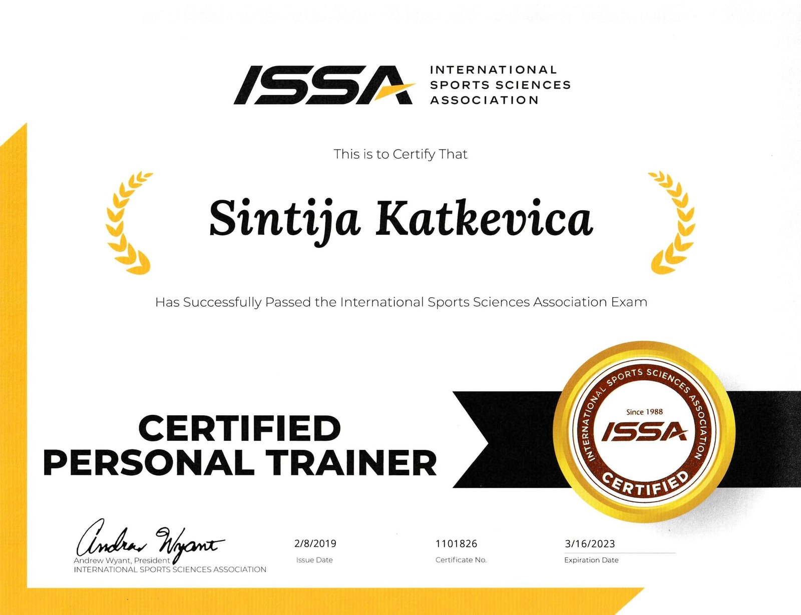 - ISSA Elite Trainer (International Sports Sciences Association)