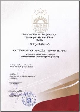 - C kategorijas sporta speciālists (sporta treneris), sertifikāts izsniegts “Latvijas Sporta federāciju padomē”