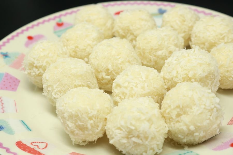 Raw sniega bumbiņas jeb Rafaello-pagatavotas no kokosriekstu skaidiņām un tikai uz augu bāzes, bez baltā cukura un figūrai draudzīgas!
