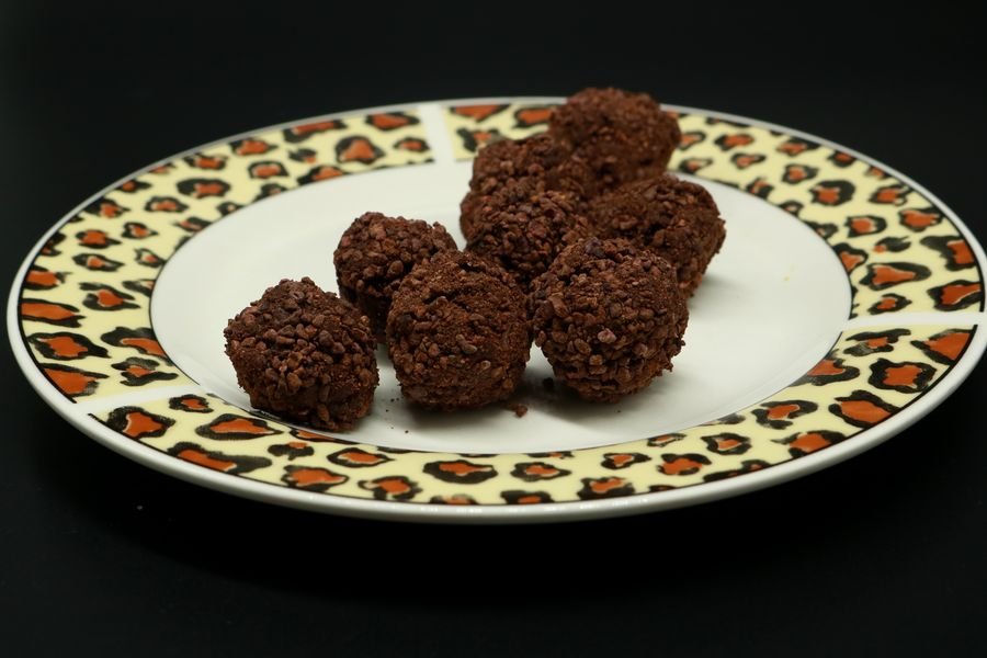 Ņemam no ledusskapja ārā masu – tā jau ir pacieta un veidojam nelielas bumbiņas – sākumā izveidojam visas bumbiņas un tikai tad katru bumbiņu apviļājam konkrētajā topingā un liekam uz šķīvja. Kad viss gatavs, liekam sķīvi ledusskapī un pēc stundas var sākt našķoties. Raw šokolādes trifeles var ledusskapī uzglabāt noteikti vairākas dienas!