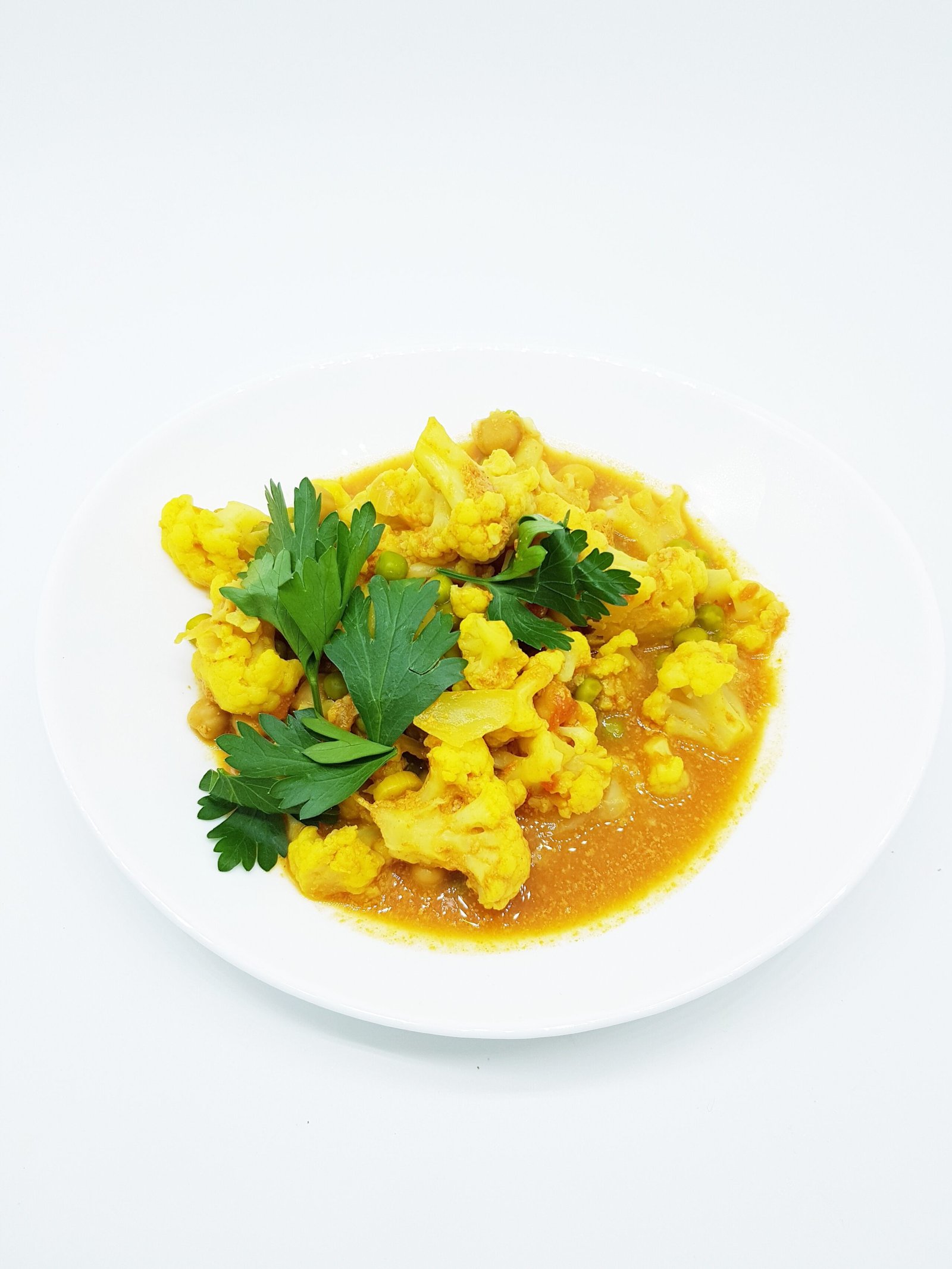 Ziedkāpostu – turku zirņu karijs – bagātīgs olbaltumvielu ēdiens, jo sastāvā ir diva veida pākšaugi – zaļie zirnīši un turku zirņi. Būs sildoša izvēle rudens dienā, kuru var droši papildināt arī ar sildošām garšvielām – čili pipariem, ja ir tāda vēlme.